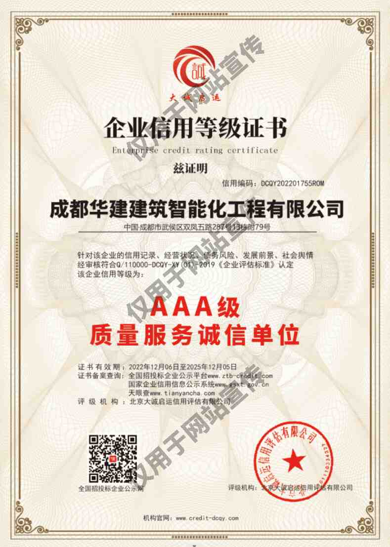 成都華建建筑智能化工程有限公司,19年專注弱電智能化工程、消防工程、建筑機電安裝工程的專業(yè)公司,具備電子與智能化工程、消防設(shè)施工程、建筑機電安裝、建筑裝修裝飾、建筑智能化設(shè)計等相關(guān)30余項資質(zhì)及證書。設(shè)計、施工和維保一站式服務(wù),多行業(yè)中大型成功交付案例。…